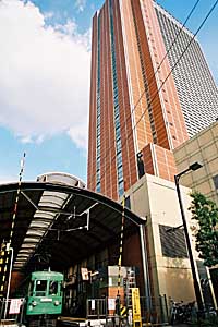 | 三軒茶屋にそびえ立つキャ ロット・タワーの下で発車を 待つ77-86。 |