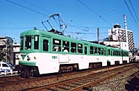 若林付近の環七通りを横断す る玉電カラーの82-81。 |