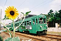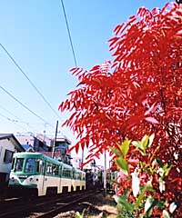 世田谷付近を快走する玉電 カラーの82-81。 |