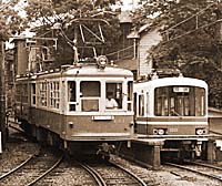 新製当時の1000形と並んだ601。 江ノ島 '80.6 |