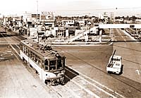 道玄坂上から国道246号線上を通ってきた玉川線は、駒沢〜新町間で旧玉川通りに入り、桜新町・用賀を経て瀬田へと向かっていた。桜新町から先は専用軌道で、用賀駅には屋根つきのプラットホームがあり、玉電に風情を添えていた。写真は用賀駅ですれ違う80形同士。 '69.5.3