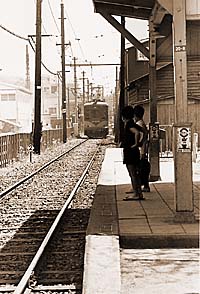 子供たちが電車を待つ中耕地へ、二子玉川園方面から砧本村行きの60形64が姿を現した。 '69.5.3