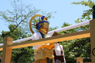 私はこの行事を見たのは初めてではありません。30数年前、その当時は八月に行われていた。炎天下にお面をかぶるなんて、灼熱地獄ゆえに5月に開催時期の変更となった。雲ひとつ無い好天で都内でも30℃近くとなった。お面をかぶって懸け橋を往復した方々はさぞや暑かったに違いない。