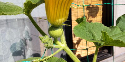 3階のバルコニーのプランターにタネからうえた糸瓜が順調に育っている。ネットに這わせて日除けにと目論んでいる。