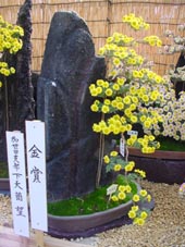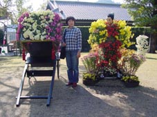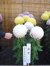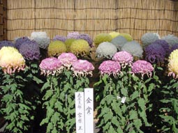 最初の見学場所がここ。ちょうど菊花展が催されていました。 丸に十の島津家の紋が印象的。 大きい菊の花にはると、大人のこぶしよりも相当大きく、子供の頭ぐらいかもしれない。 |